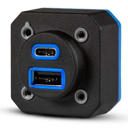 The dual-port GSB 15 offers multiple charging options. The dual USB Type-A GSB 15 charging hub features Qualcomm® Quick Charge™ technology and can deliver up to 18 watts of power to each USB port simultaneously. If you have a newer portable device, including iPad Pro tablets from 2018 or later, the GSB 15 dual USB Type-C version offers up to 27 watts — enough to power two tablets or similar smart devices while also charging their batteries1. It also includes USB Power Delivery technology to provide optimal charging to every connected device. You can even choose a version that offers one of each type connector for maximum flexibility. With any option, there’s built-in protection against circuit and temperature overloads. Plus, configurable halo lighting on the plugs makes them easy to locate and access in a darkened cabin or cockpit — and the dual USB Type-C and USB Type-A/Type-C versions even have dimmable lighting.